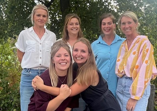 Team 2de kleuterklas. (v.l.n.r.: juf Stephanie, juf Leslie, juf Lieselotte, juf Annick, juf Karen, juf Hilde)